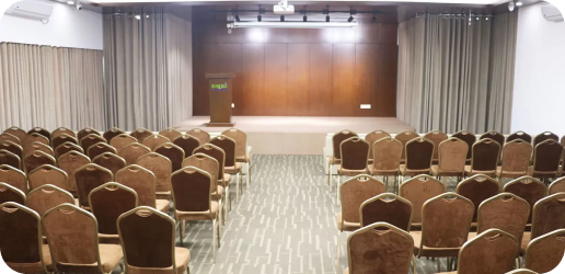 This 763 square feet luxury auditorium hall is used for various business corporate meetings, official presentations, annual sales meetings and various events. This hall has a seating capacity of 40 people.