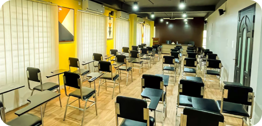 This modernized seminar hall is 950 square feet. The hall has a seating arrangement of 45 people. The hall is used for various seminars, trainings, conferences, meetings etc.